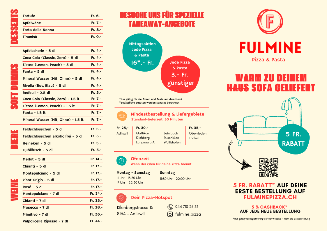Welcome to Fulmine, a delightful pizza haven located at Kilchbergstrasse 15 in Adliswil, Switzerland. Combining quality ingredients with friendly service, Fulmine has garnered a loyal following among locals. Customers rave about the incredible pizza offerings, particularly the renowned Pizza Margherita, which promises an authentic Italian experience.